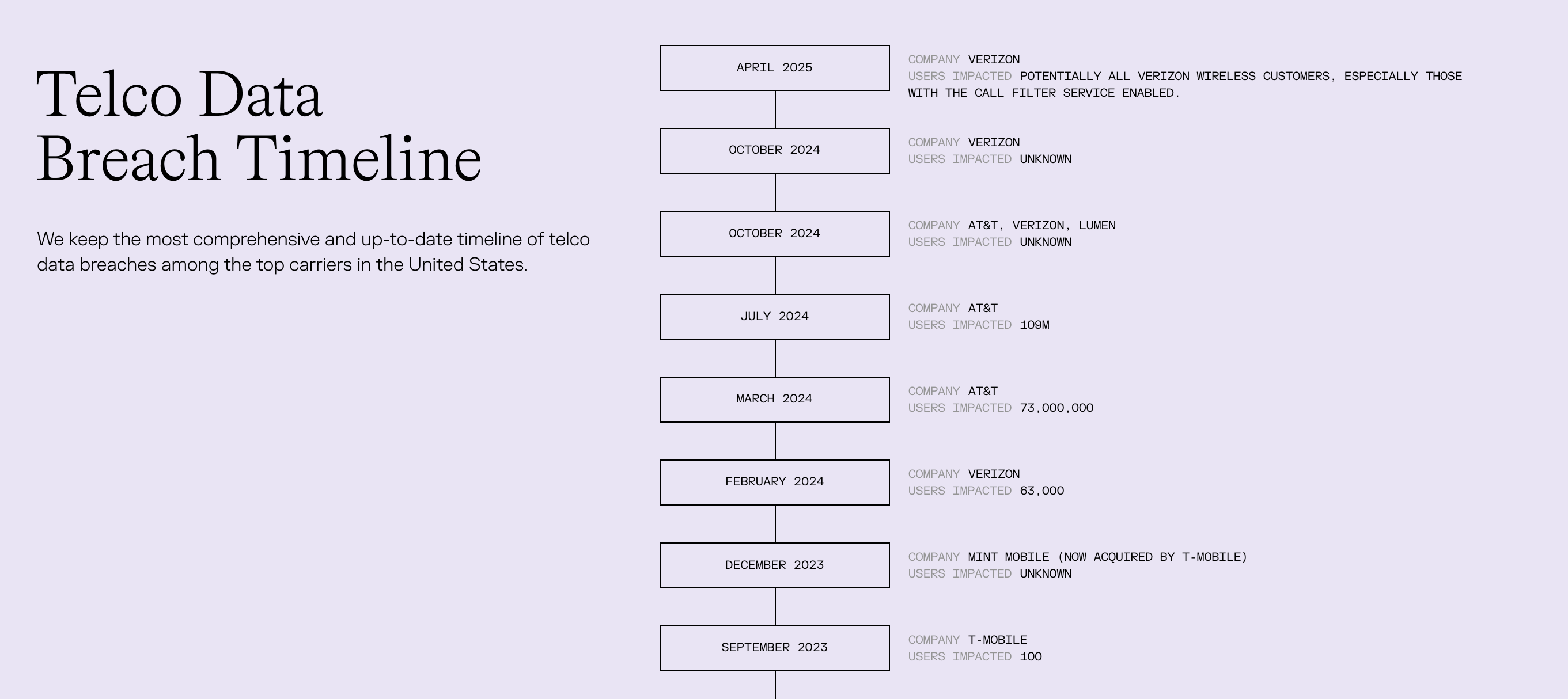 Unfortunately, Verizon isn’t far behind when it comes to privacy concerns. According to Cape’s Telco Data Breach Timeline, Verizon has experienced several security incidents in recent years. These include SIM swapping activities, cybersecurity attacks, and internal data breaches.