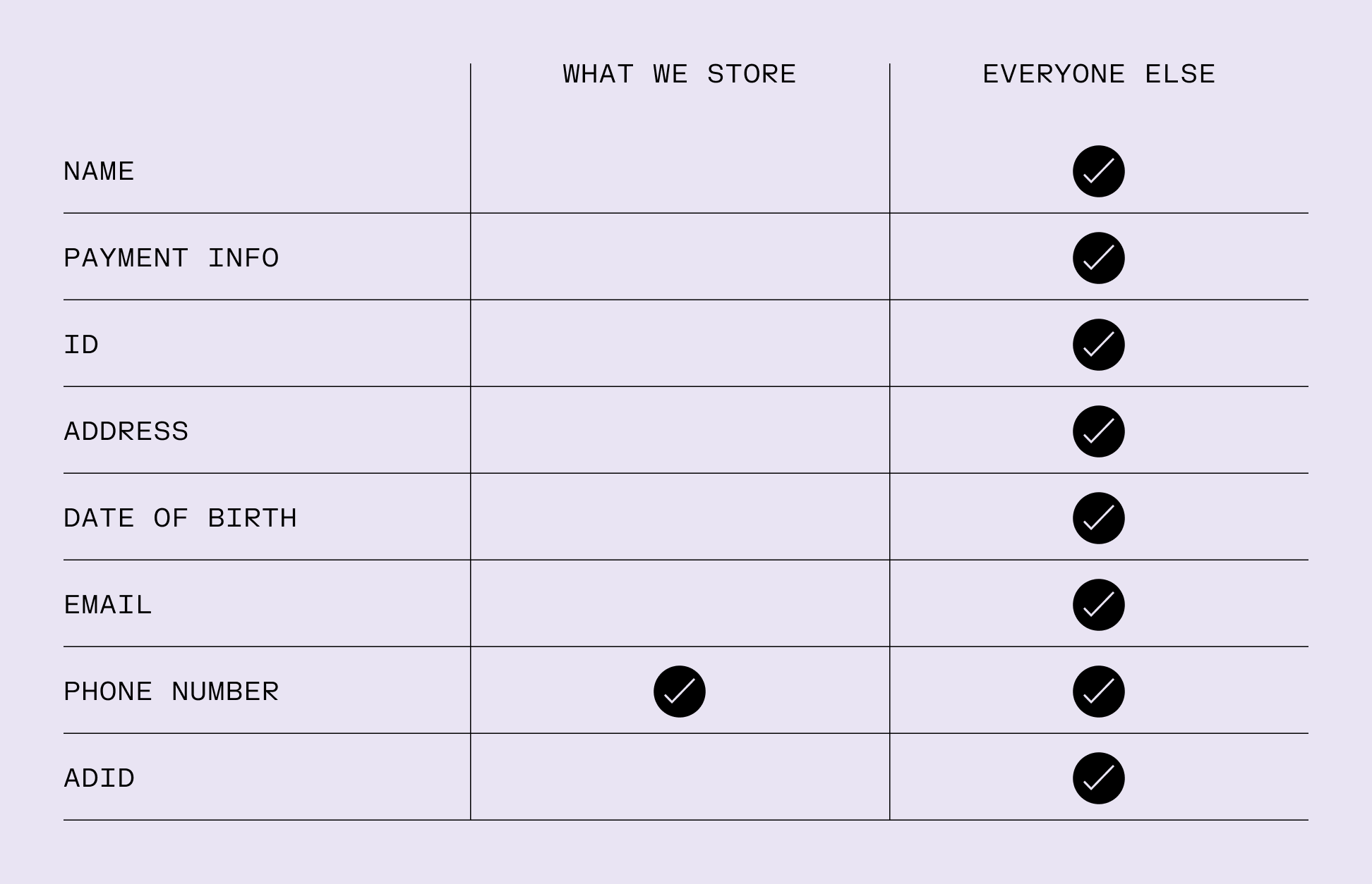 We only collect the minimum amount of data needed to provide you service.